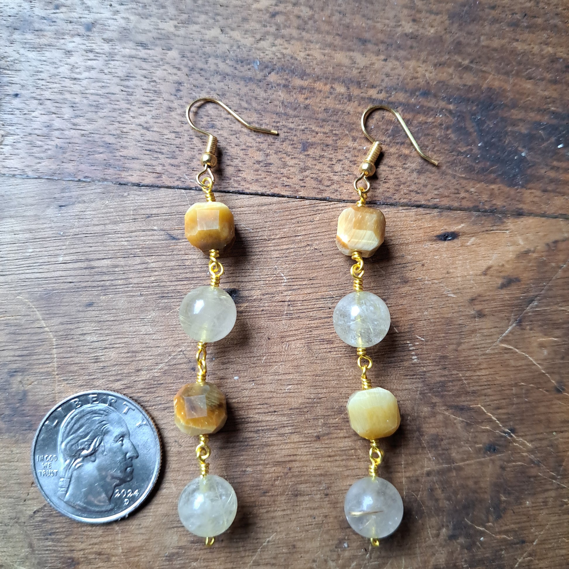 Golden Tiger's Eye and Golden Hair Quartz Earrings