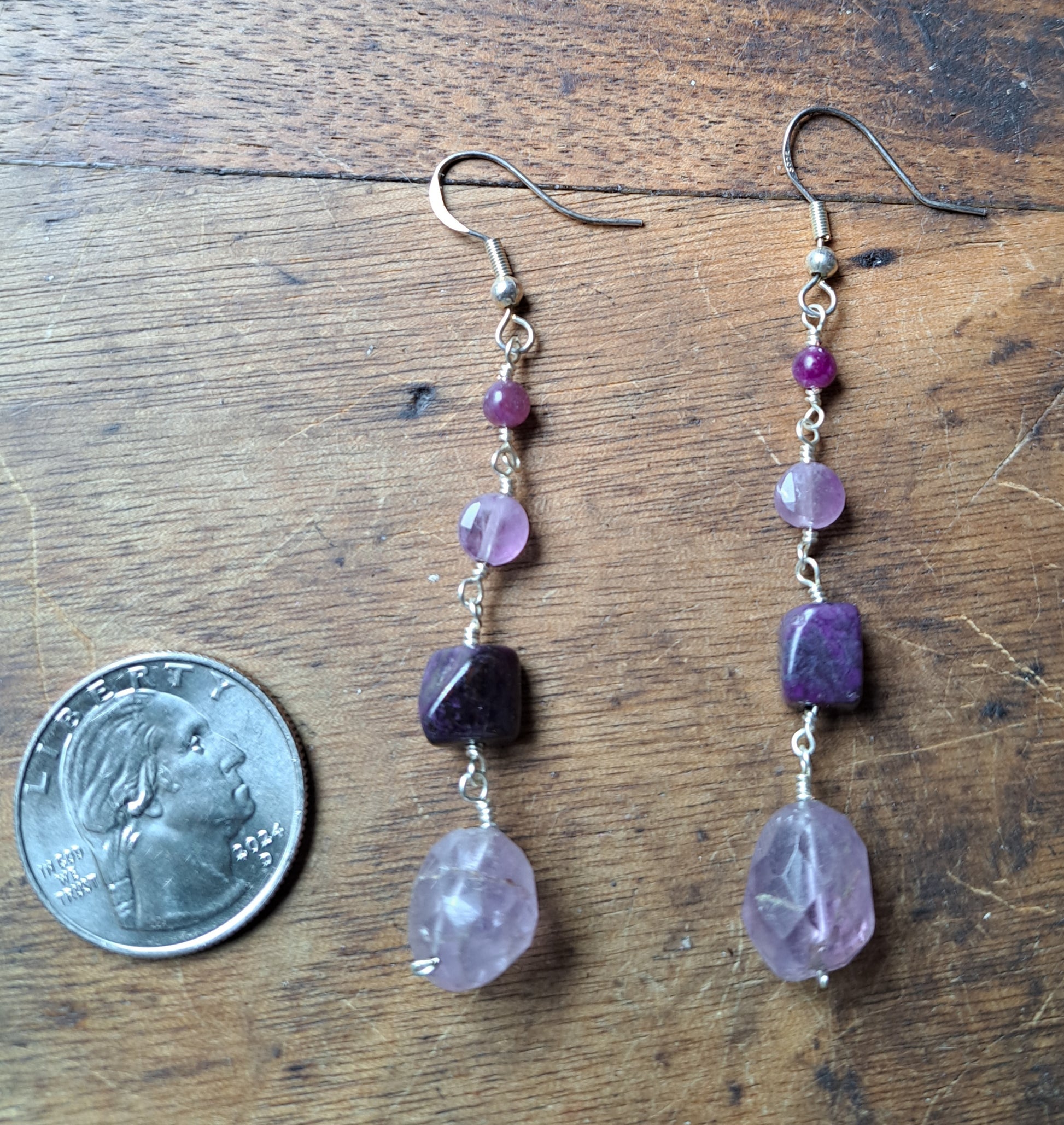 Lepidolite Sugilite and Amethyst Earrings