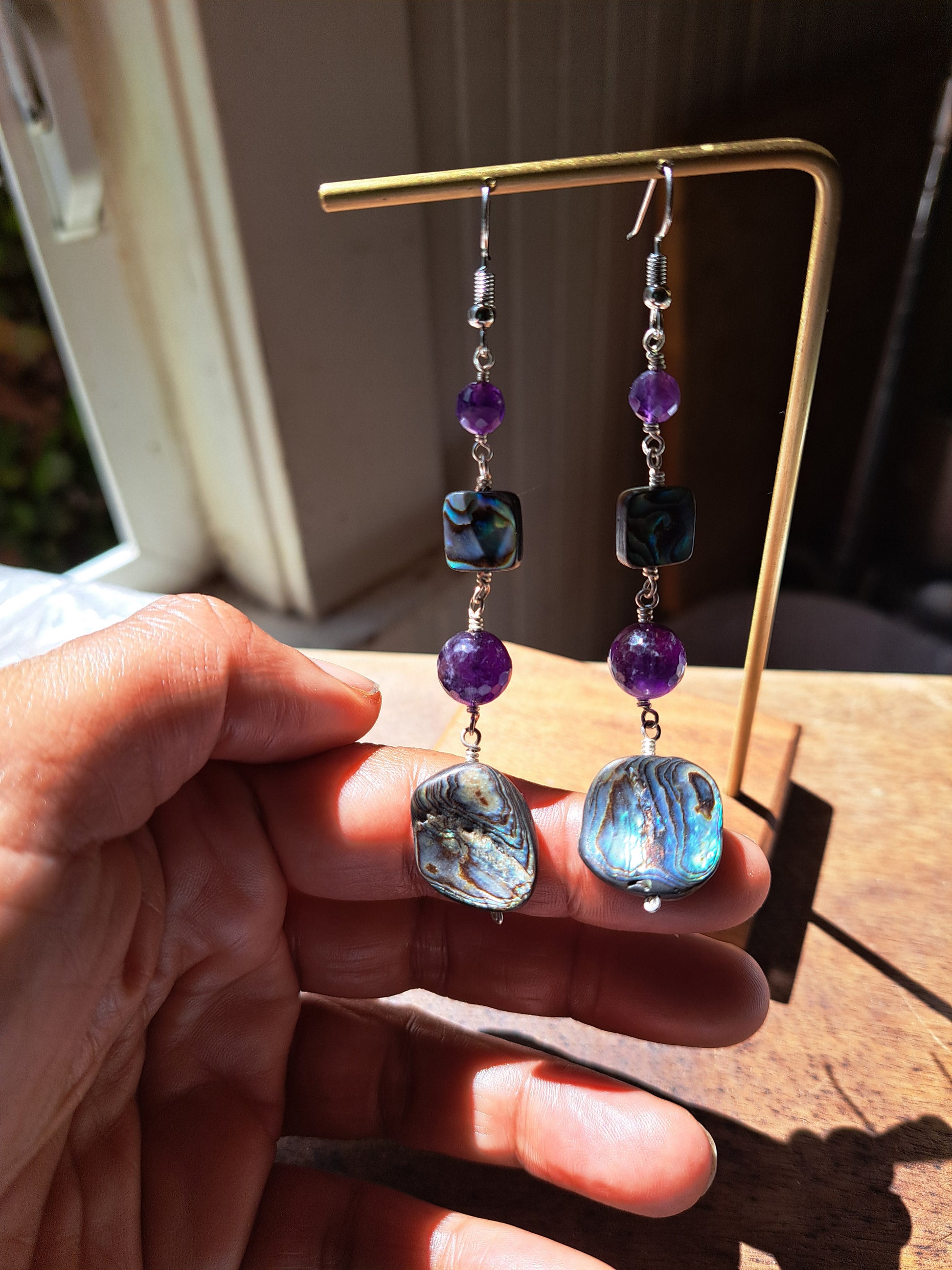 Amethyst and Abalone Earrings